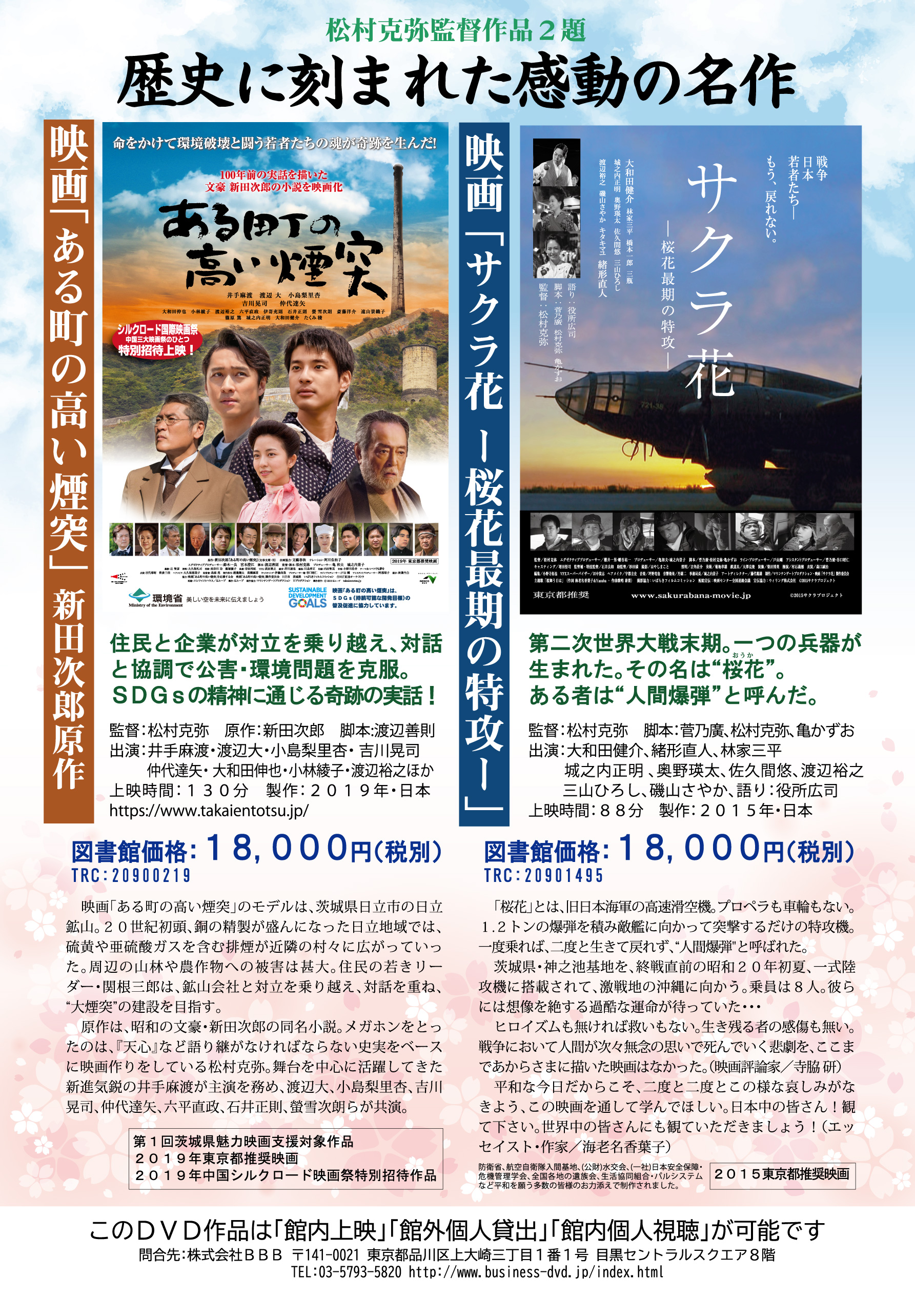 図書館向け本体価格 18,000円 (税別) 館内上映 個人館内貸出 個人館外貸出 団体貸出付 50,000円 (税別) 〇 〇 〇 - 戦争・平和