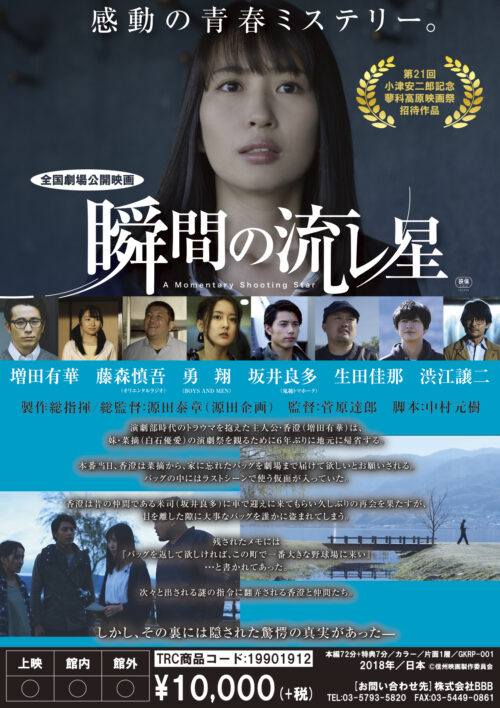 元AKB48の増田有華が主演を務めた青春ミステリー。長野県を舞台に、演劇部時代のあるトラウマを抱えたヒロインが、正体不明の人物の“指令“に振り回されていく姿を描く。『タロット探偵 ボブ西田』のプロデューサー、源田泰章が総監督&製作総指揮を務め、勇翔、鬼越トマホーク、オリエンタルラジオの藤森慎吾ら多彩なキャストが出演する。