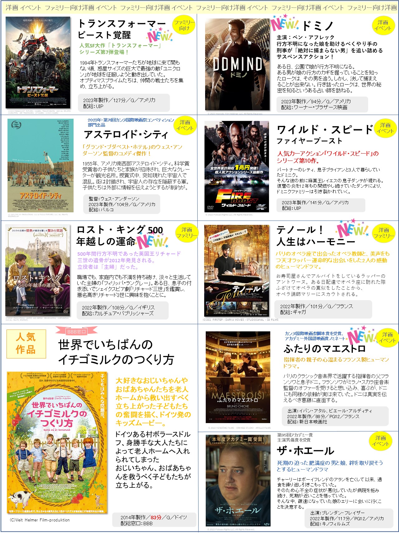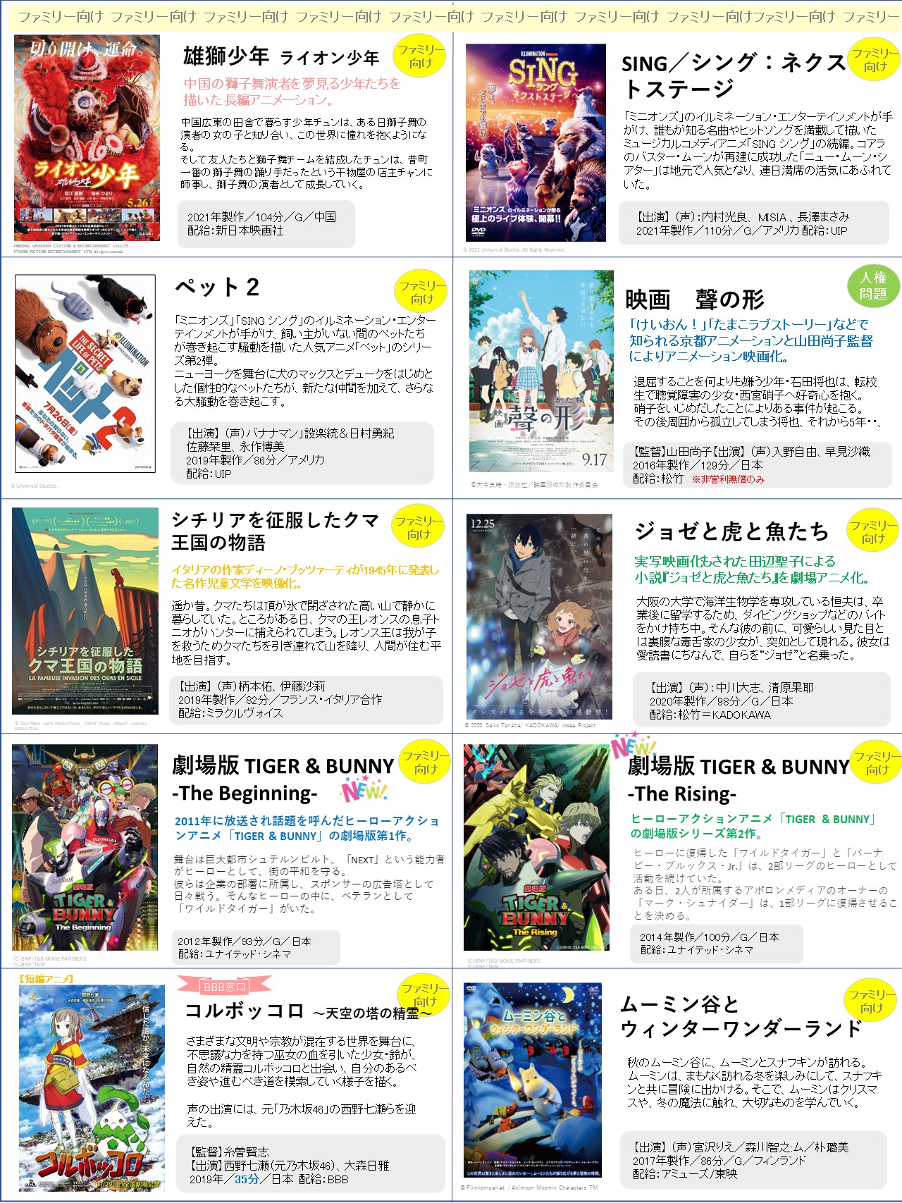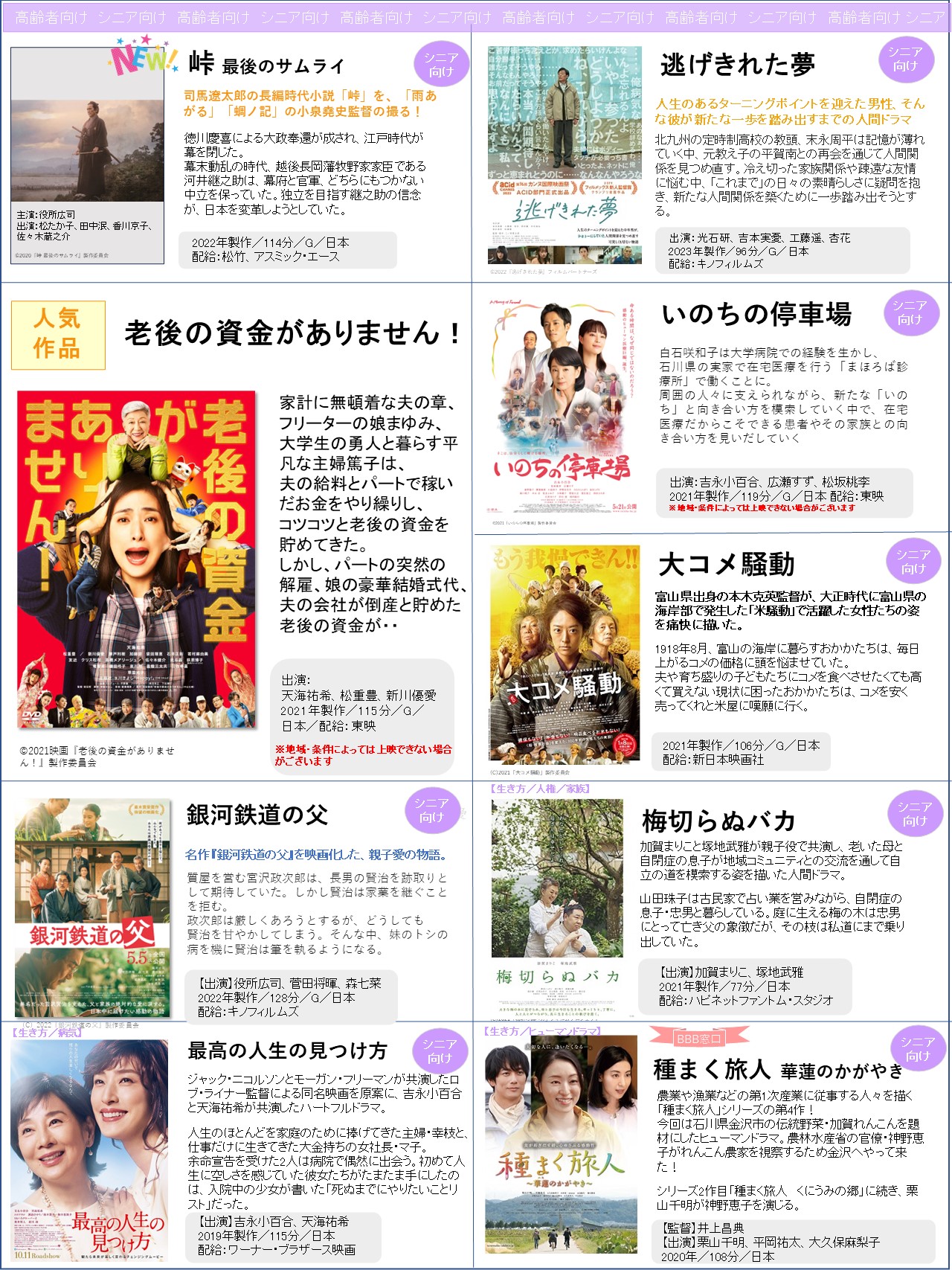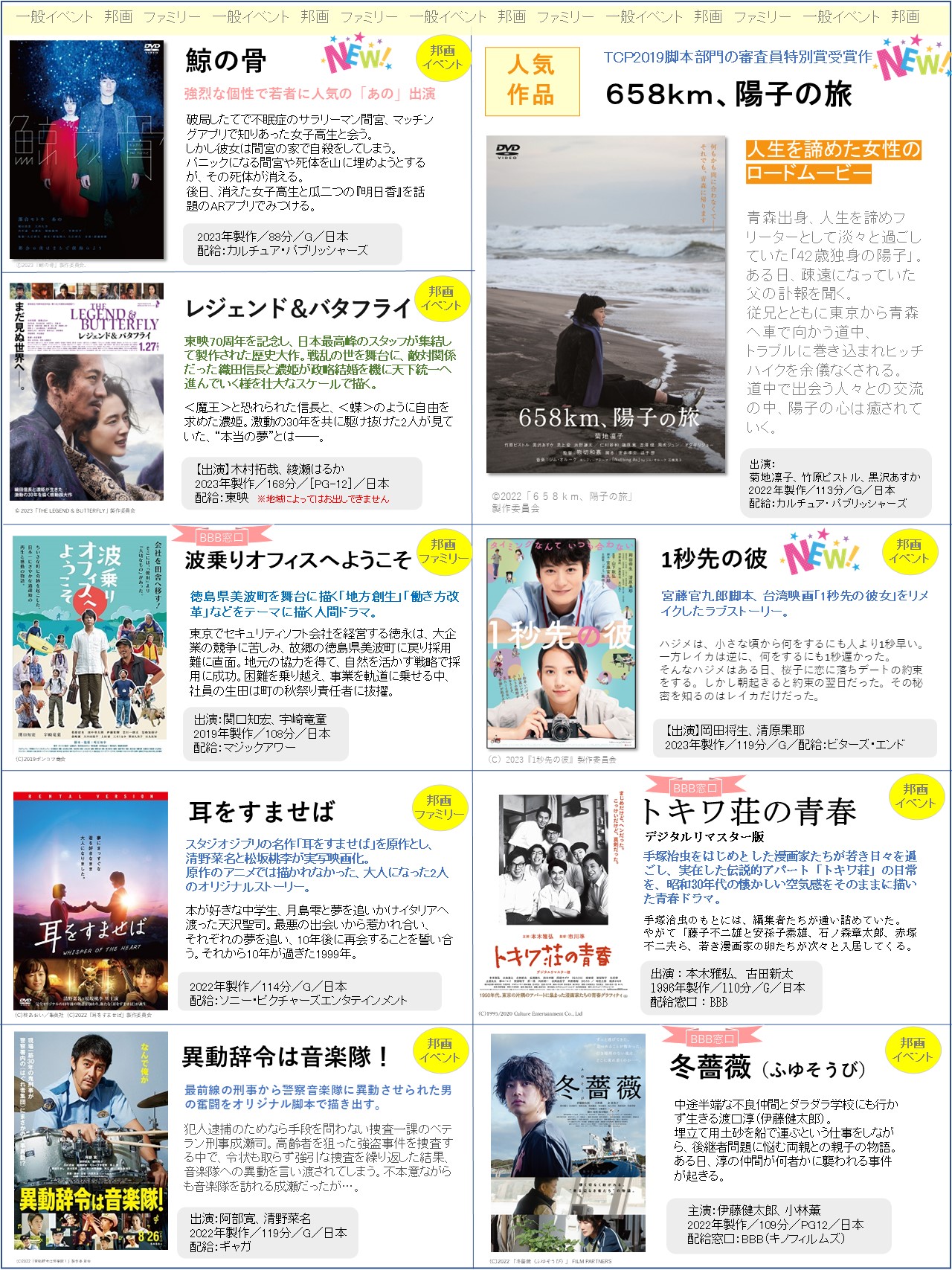 上映会向けの「新作」ラインナップをアップしました!選定の参考にしていただけたら何よりです!