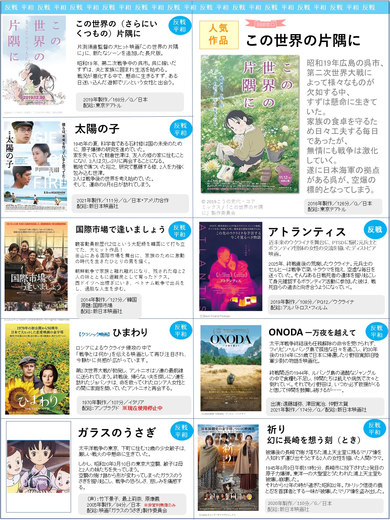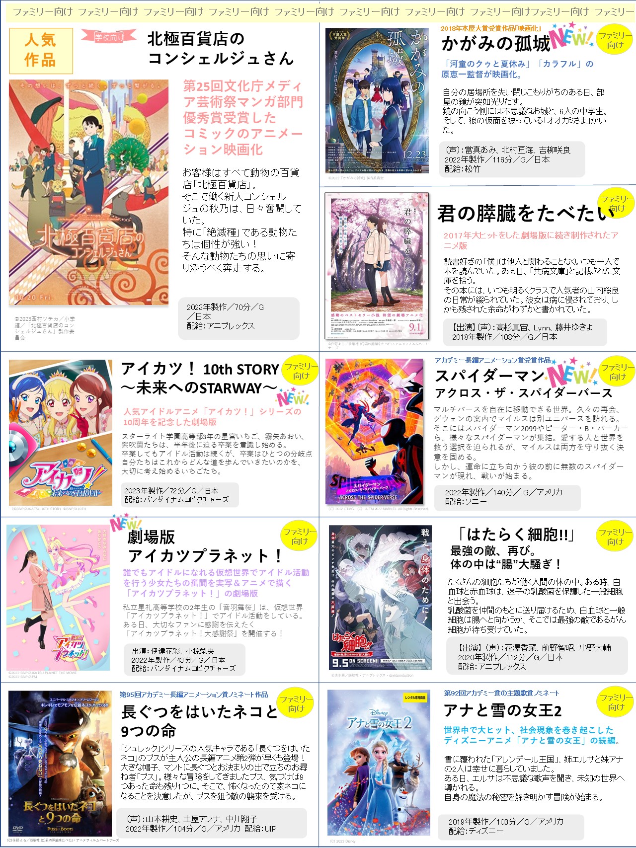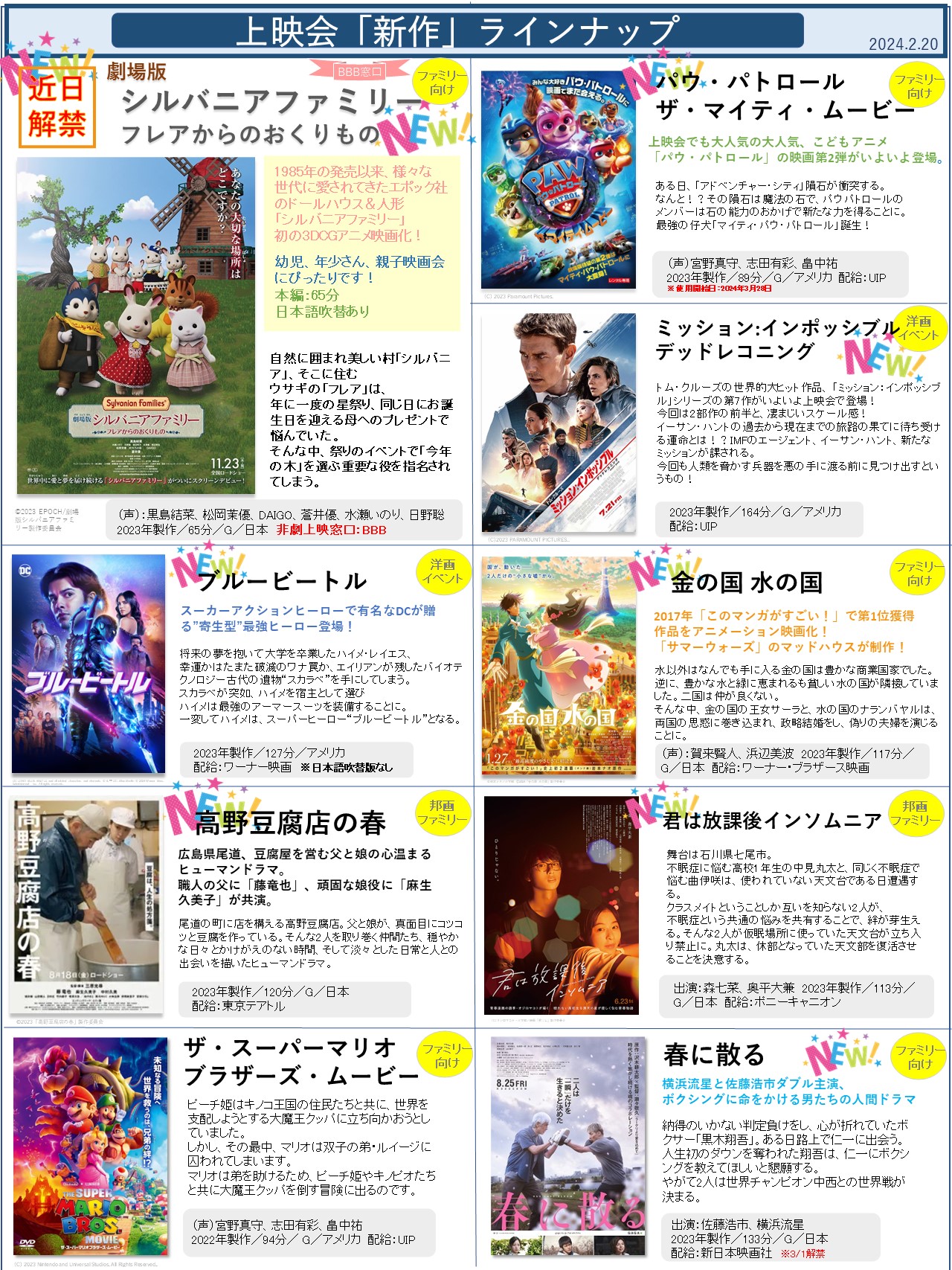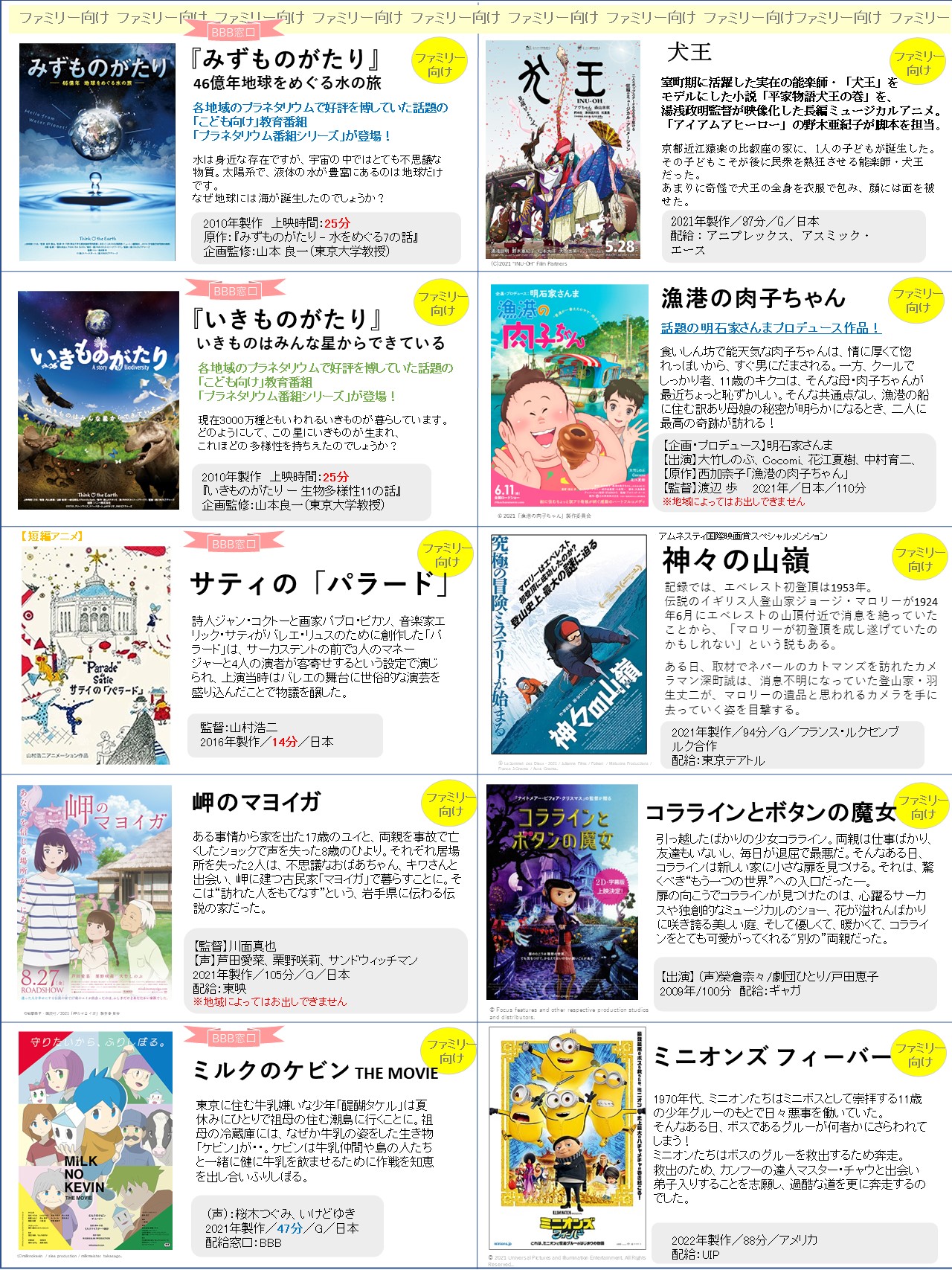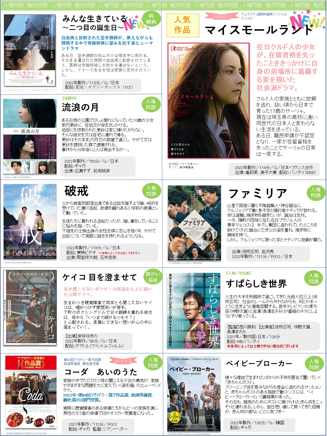 上映会向けの「新作」ラインナップをアップしました!選定の参考にしていただけたら何よりです!