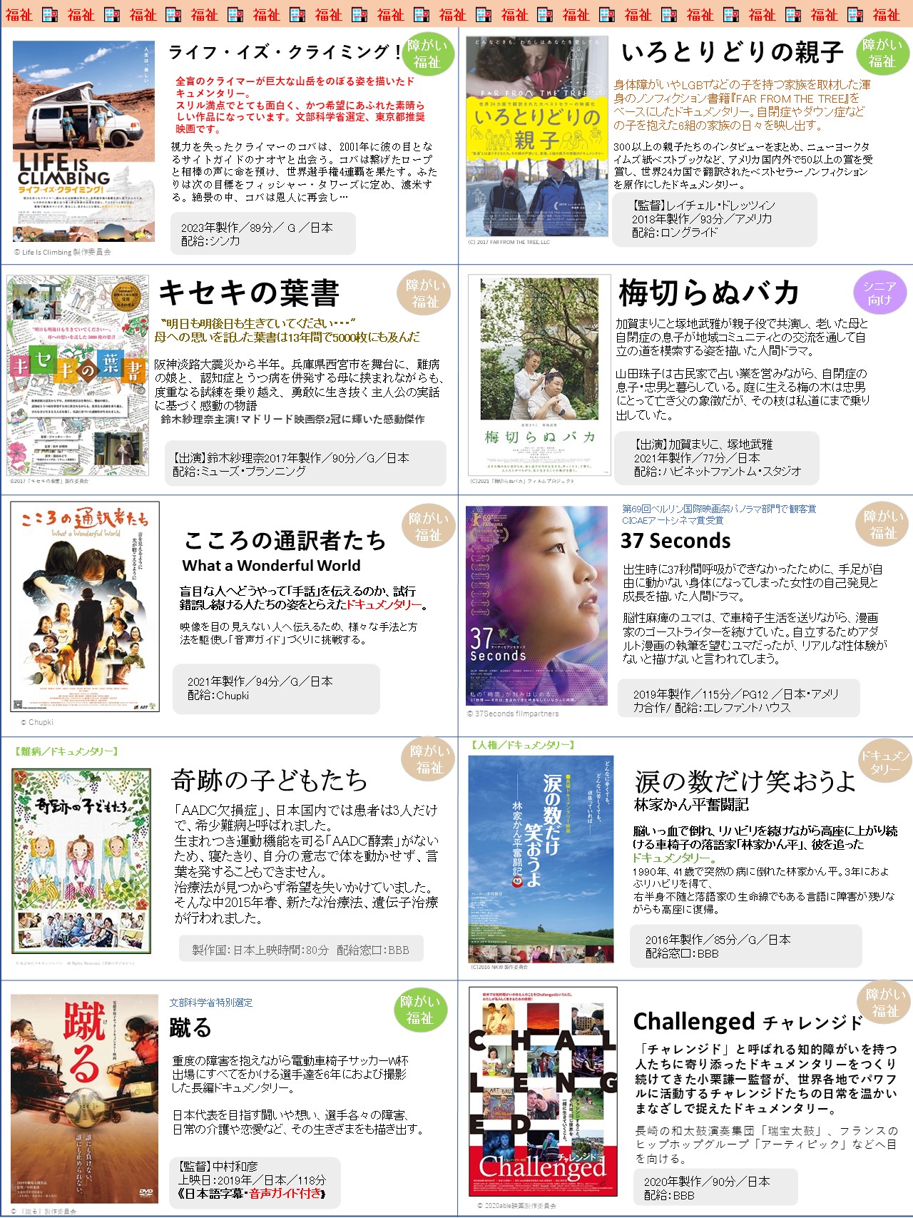 福祉映画の上映会を通じて、より多くの方々に福祉への関心や理解を深めていただく。いのちの尊さやを再発見し、障がい者差別のない社会作りに、少しでもお力になれたらと思います。問い合わせの高い作品をピックアップしました。