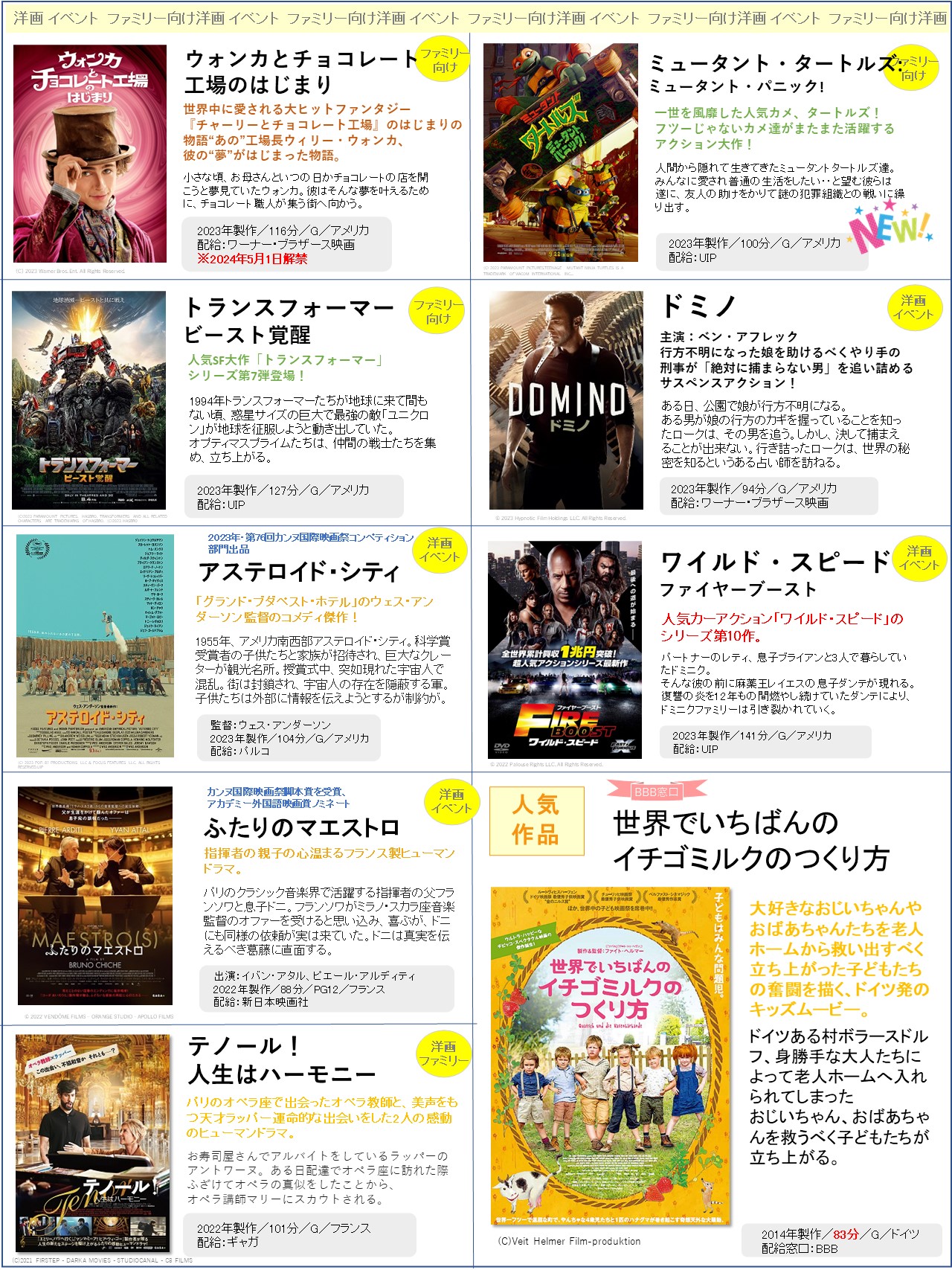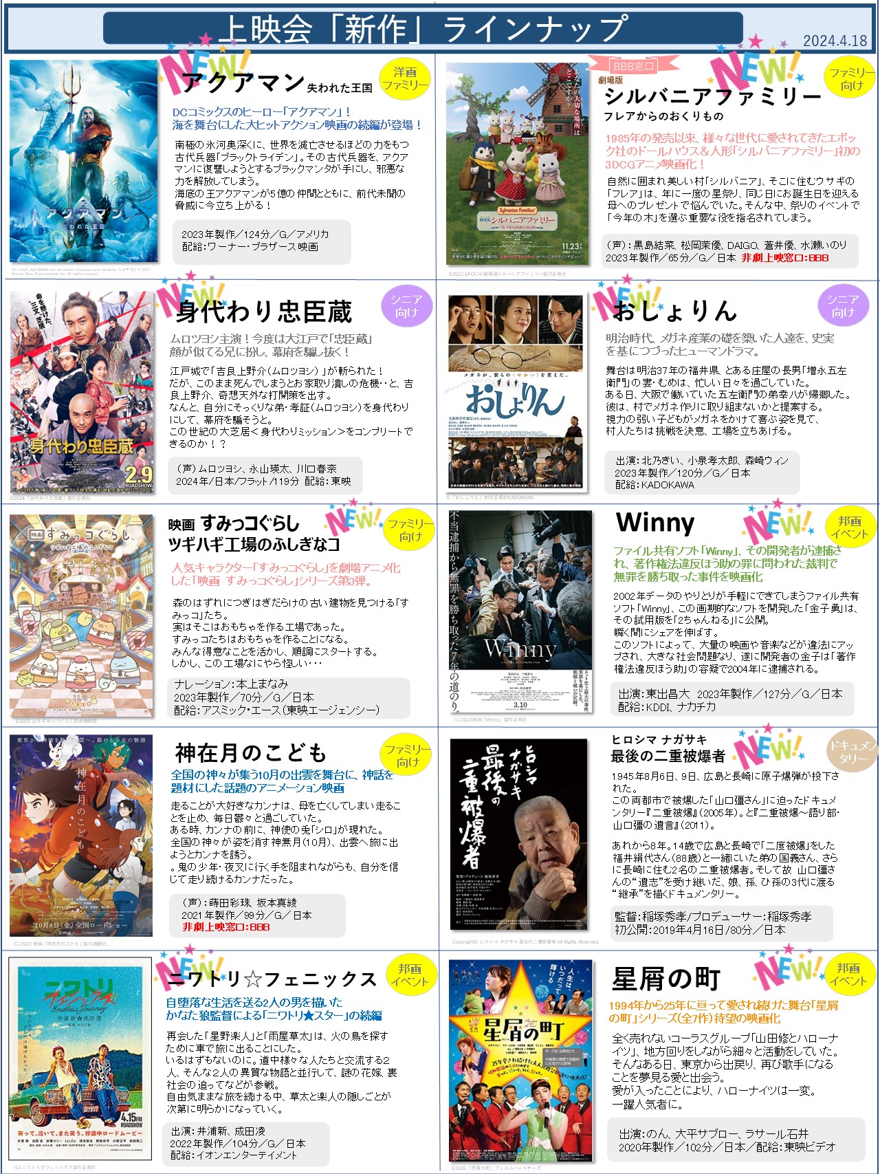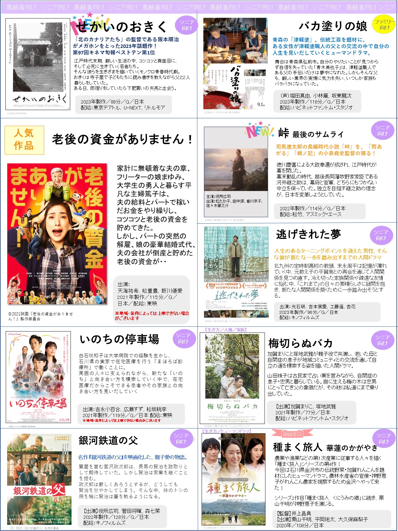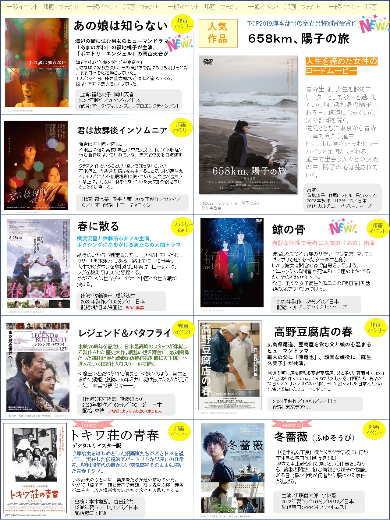 上映会向けの「新作」ラインナップをアップしました!選定の参考にしていただけたら何よりです!