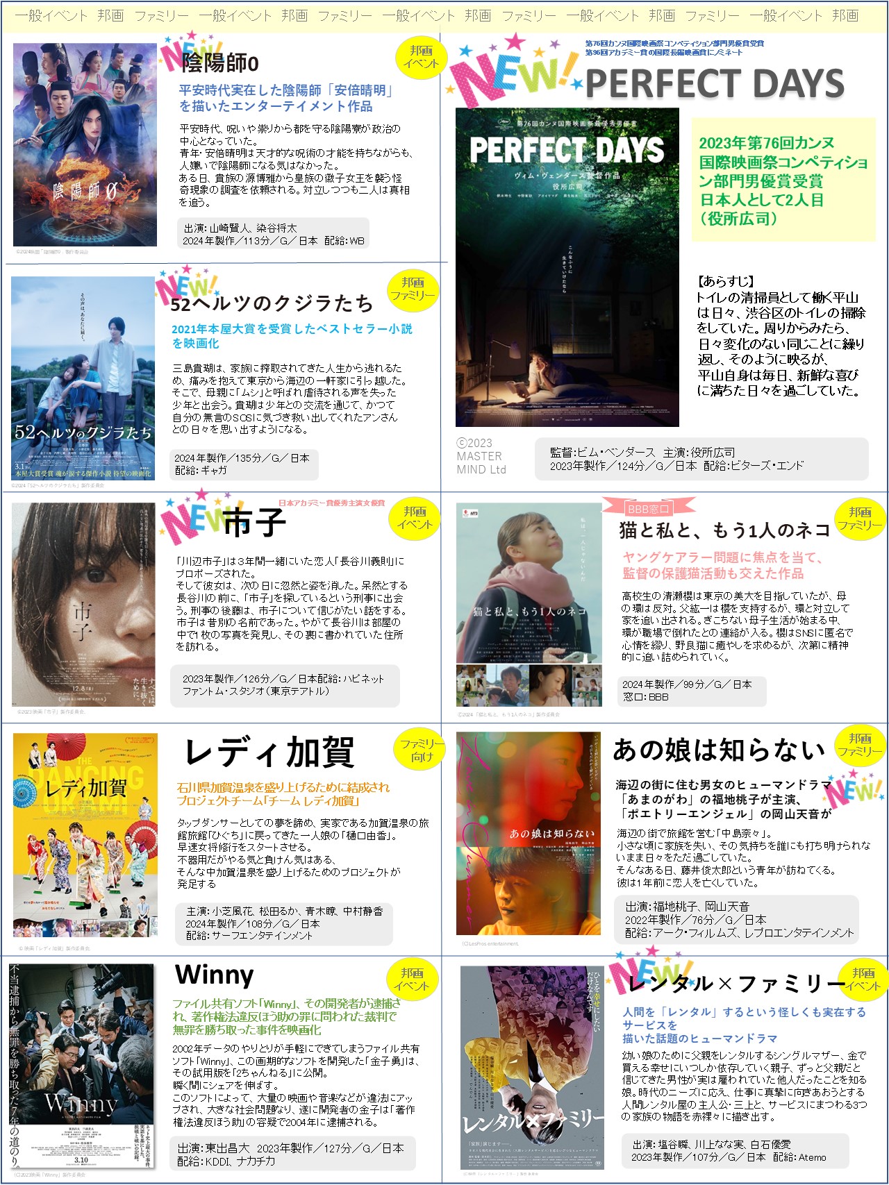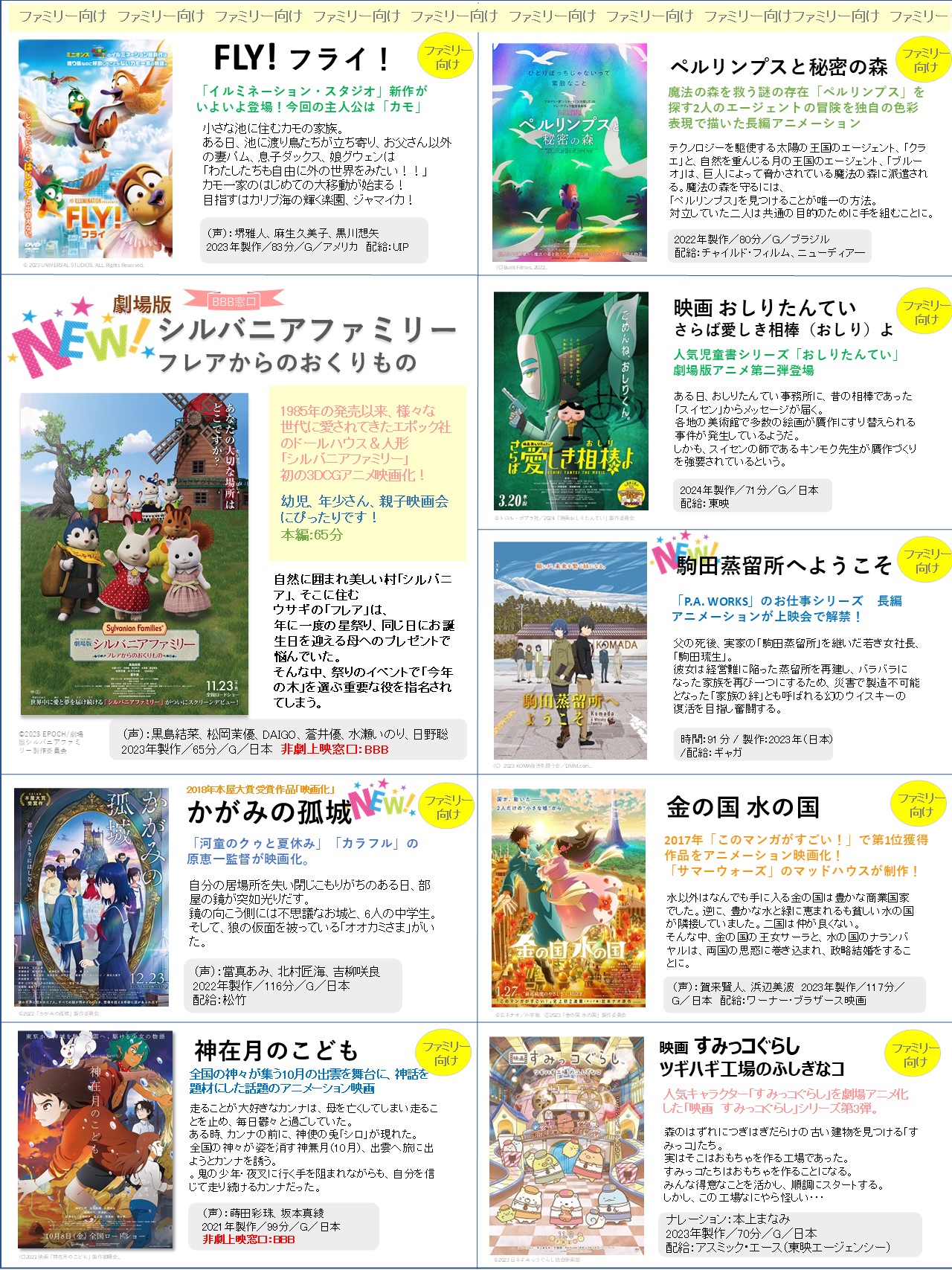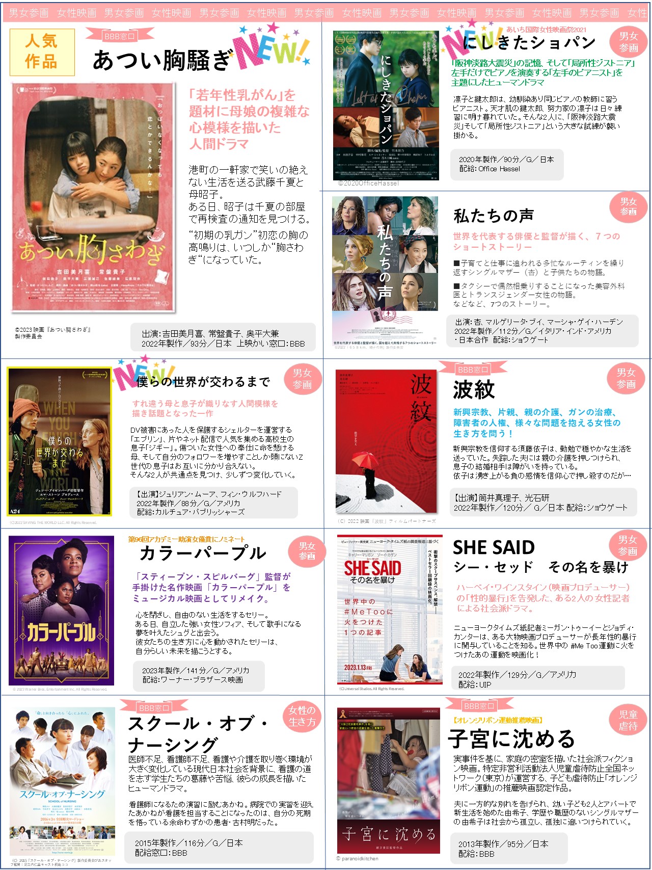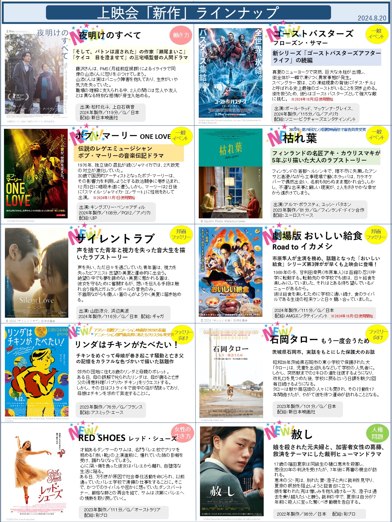 上映会向けの「新作」ラインナップをアップしました!選定の参考にしていただけたら何よりです!